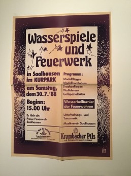 In den 80-zigern wurden die Wasserspiele immer populärer und wurden weit über Saalhausen bekannt. Die Zuschauerzahlen nahmen zu und die logistische Herausforderung für die Freiwillige Feuerwehr und den Musikverein wurde immer größer. Damals gab es noch kein Organigramm, Handys oder Whats Up waren weit entfernt und es wurde alles unter den Akteuren und Helfern telefonisch oder persönlich besprochen und dann umgesetzt. Bereits jeweils kurz nach Weihnachten fingen die ersten Besprechungen im Proberaum des Musikvereins oder bei der Feuerwehr statt.