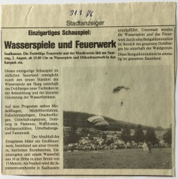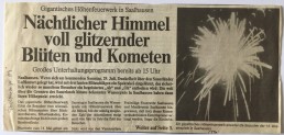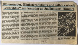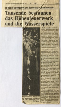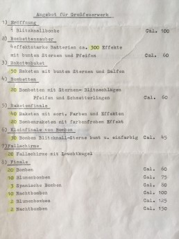 - Bestellungen bei der Firma Elkemann in Schmallenberg und der Pyro Chemie in Eitdorf in Sieg- heute WECO für ein Feuerwerk, damals in noch in Preisregionen um die 2000-2500 DM lag.